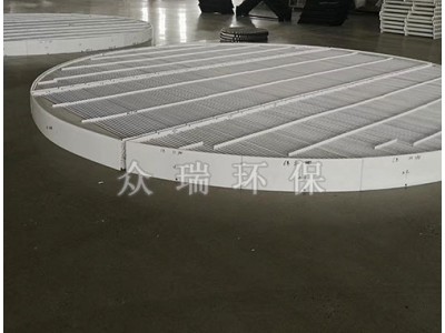 除雾器是脱硫塔重要部件。除雾器的功用是把在喷雾吸收过程中,烟气夹带的雾粒、浆液滴捕集下来。除雾器的功率不只与它身的结构有关并且与雾粒的重度和粒径有关,喷嘴雾化粒径与吸收液黏度、喷雾爪力和喷嘴结构有关。把除雾器功能和雾粒直径配好,才干获得好的除雾作用。