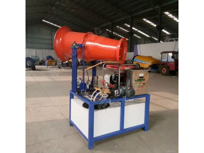 汽油炮雾机整机结构紧凑,自带水罐,移动方便。出厂时全部调试完哔,购买后无需复杂安装,加水接电即可使用,简单方便。上部是风机风筒和喷雾喷头,下部是高压泵、水箱和控制系统,合理放置在钢材焊接的主体框架内,下部是轮胎。雾炮工作时高压泵将水加压通过风筒前部的喷雾喷头雾化,风机风筒出风将水雾扩散到需要扬尘控制的区域,使水雾与粉尘颗粒充分接触、碰撞、结合变成大颗粒团聚从而自然沉降,达到去除扬尘、洁净空气稀释有害气体、降温等多重功效。